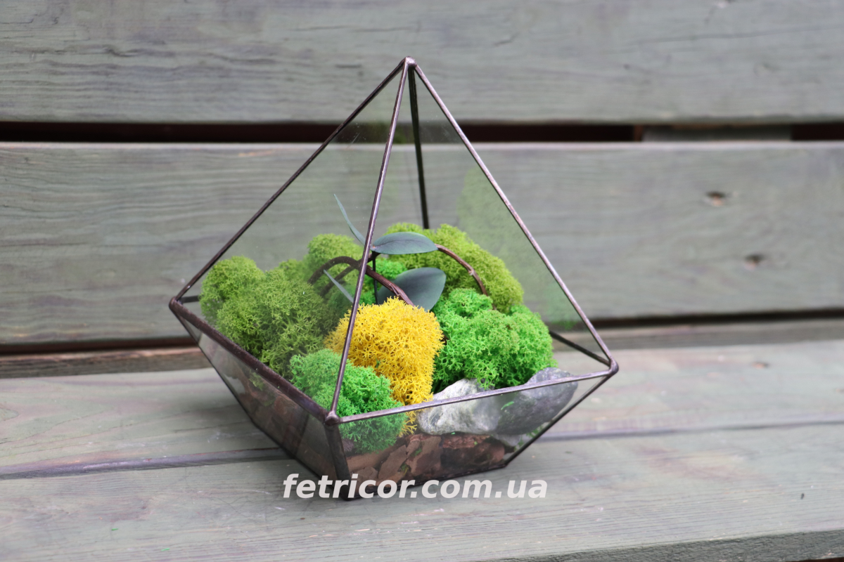 З 2016 року ми створюємо флораріуми в оригінальних геометричних скляних формах. Вони ідеально підкреслюють красу та унікальність сукулентів, стильно доповнюють інтер’єр і привертають погляди.