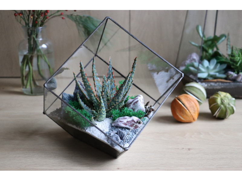 Наша новинка - флораріум з різнобарвними сукулентами у скляному будиночку. А..